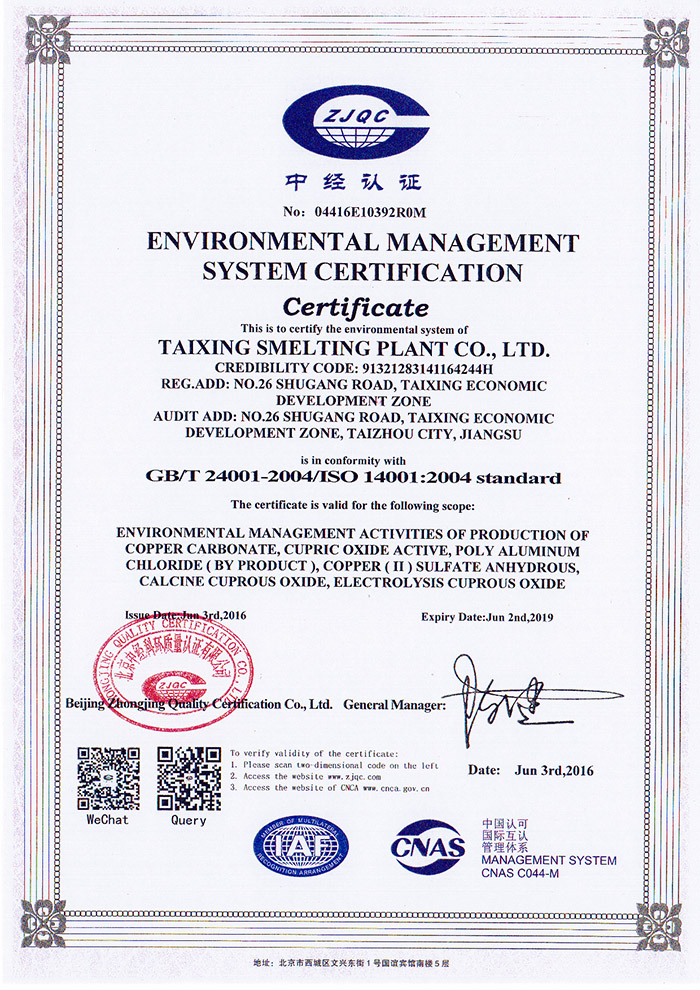 ISO14000 Environmental Management System Certificate--English version